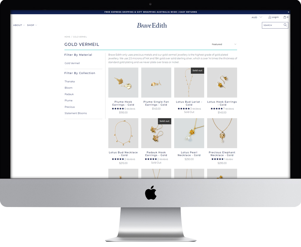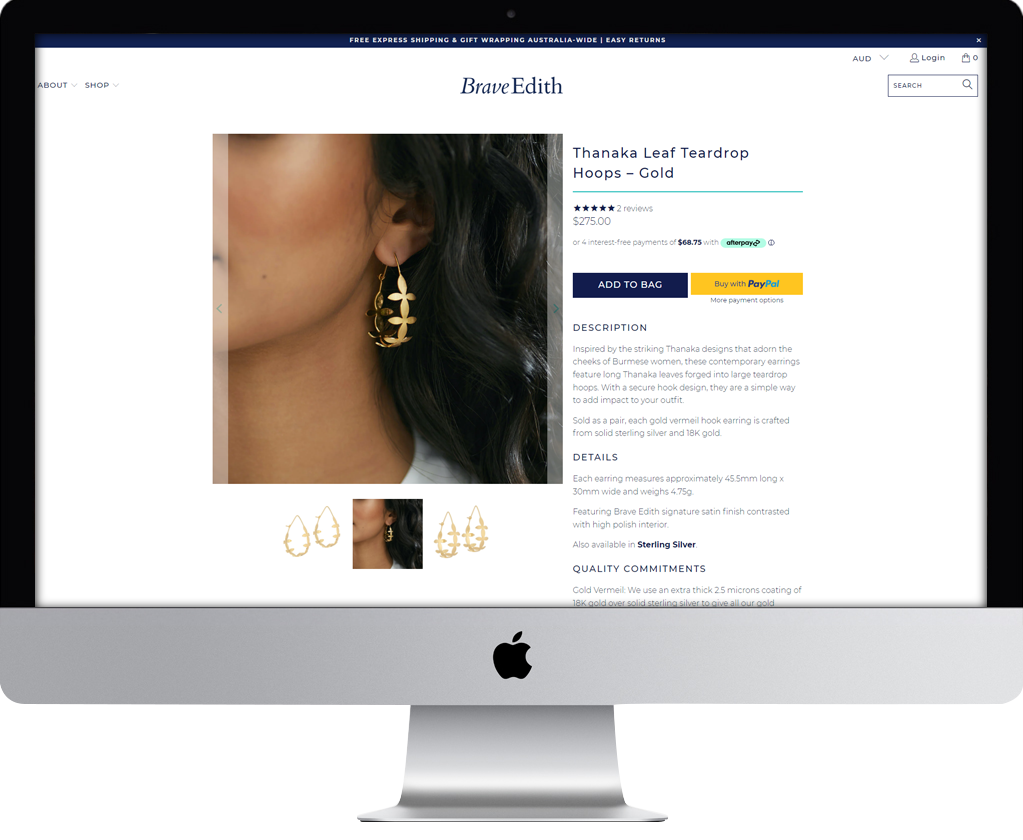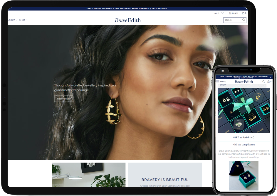 The Brave Edith website is a shopify site with a fine tuned theme.