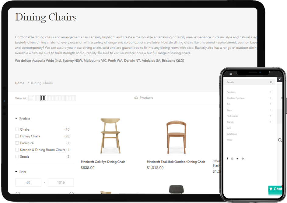 Easterly required an online e-commerce presence that reflected their ever expanding showroom located in Geelong, Victoria. They pride themselves in offering not just everything you need to style and decorate your home, but also specialised services from on-site interior designers.