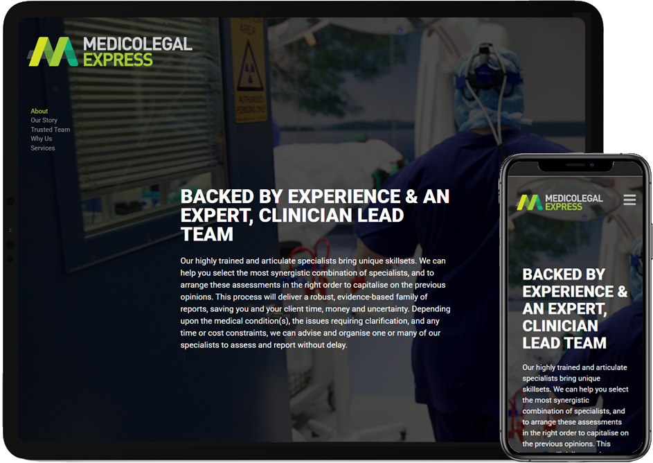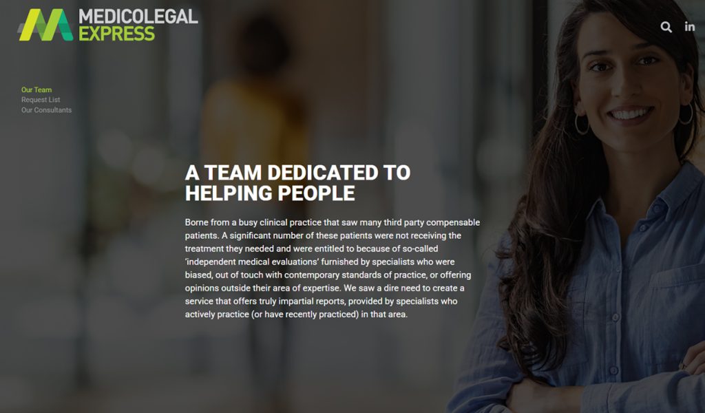 Medico Legal Express needed a new full screen full section scroller, fully responsive fully impactful website to reflect their highly specialist unique skillset.